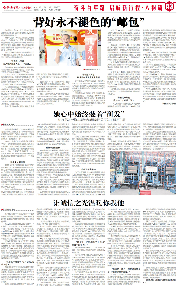 她心中始终装着“研发” ——记江苏省劳模、泰...