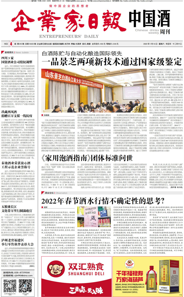 白酒陈贮与自动化酿造国际领先 一品景芝两项新...