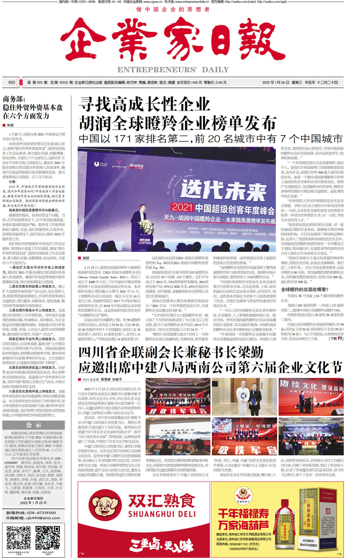 国内统一刊号:CN51—0098 中国•企业家日报