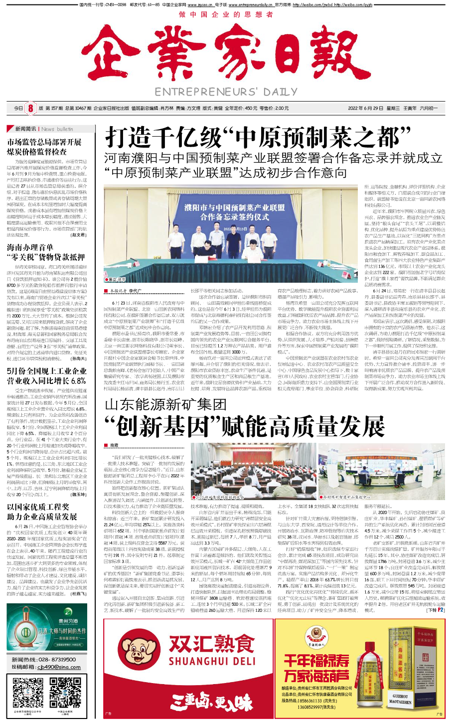 打造千亿级“中原预制菜之都” 河南濮阳与中国...
