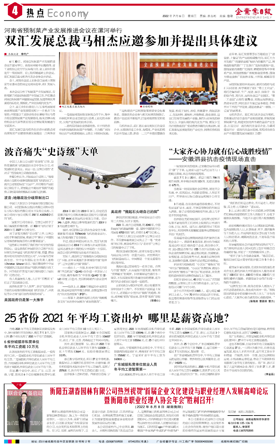 国内统一刊号:CN51—0098 中国•企业家日报