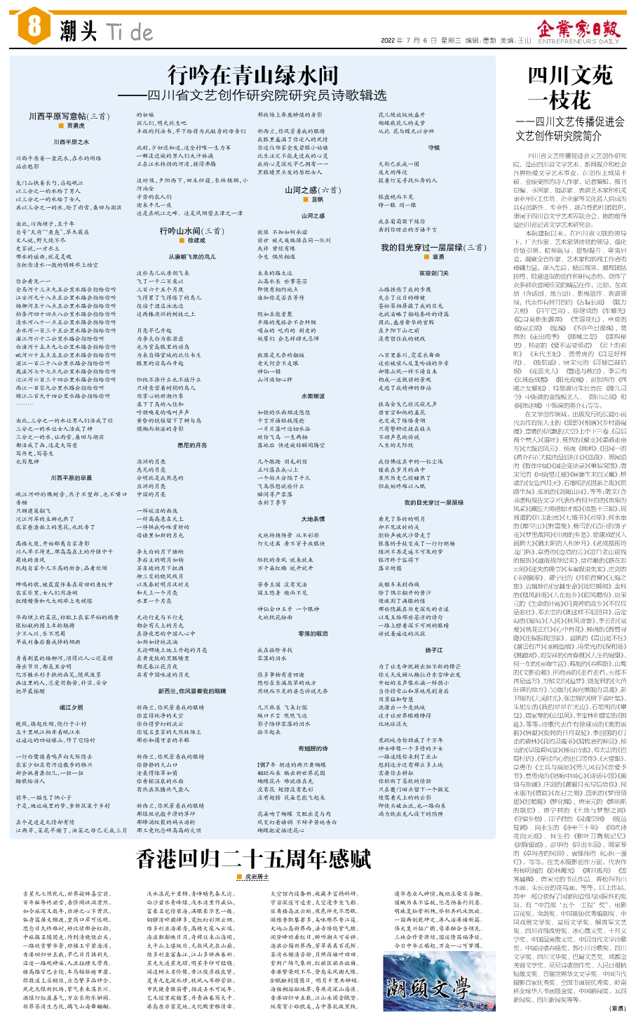 国内统一刊号:CN51—0098 中国•企业家日报