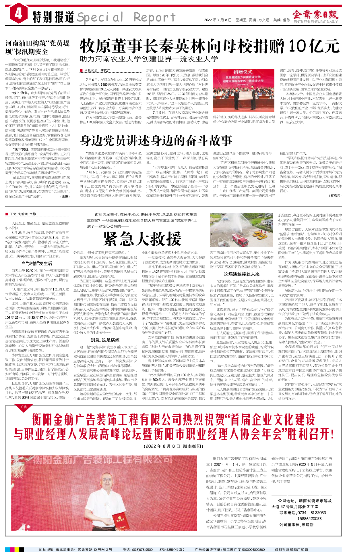 国内统一刊号:CN51—0098 中国•企业家日报