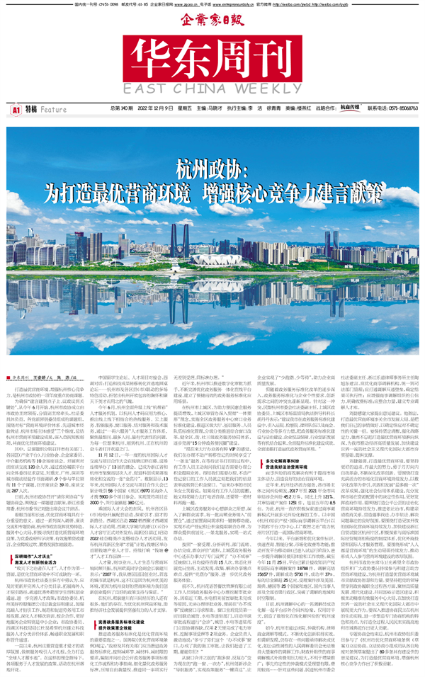 杭州政协:为打造最优营商环境 增强核心竞争力...