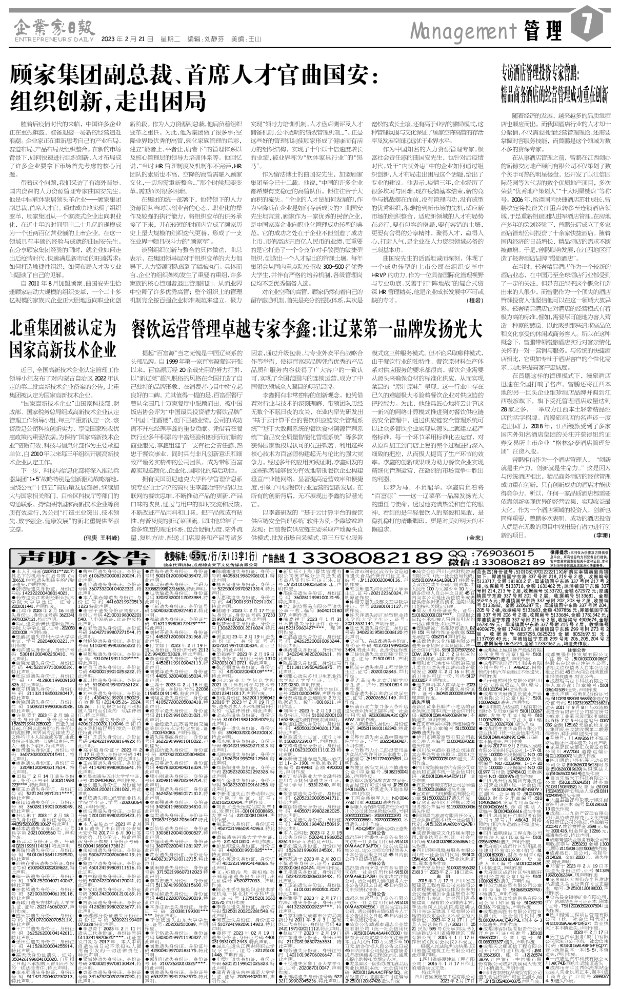 国内统一刊号:CN51—0098 中国•企业家日报