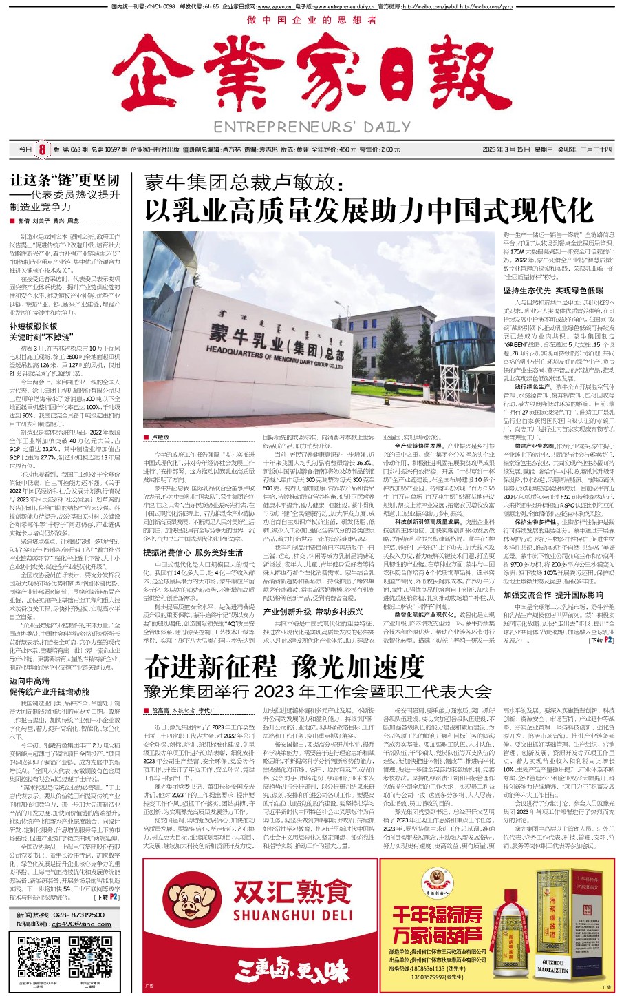 蒙牛集团总裁卢敏放: 以乳业高质量发展助力中...