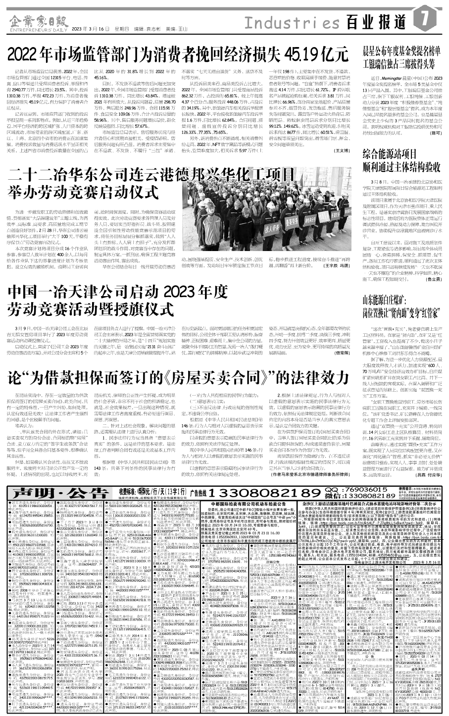 2022年市场监管部门为消费者挽回经济损失45.19...