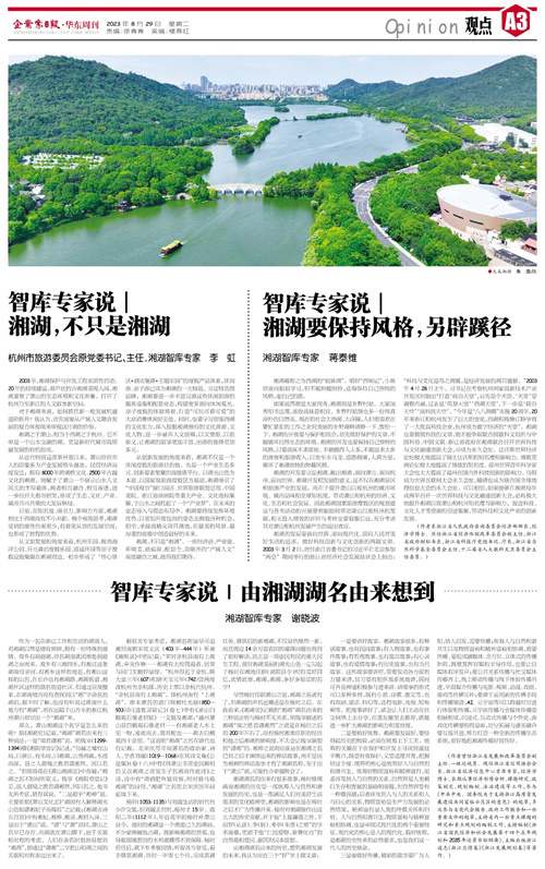 智库专家说| 湘湖要保持风格,另辟蹊径...