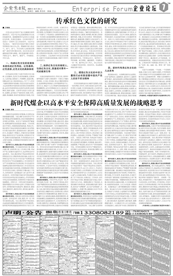 新时代煤企以高水平安全保障高质量发展的战略思...