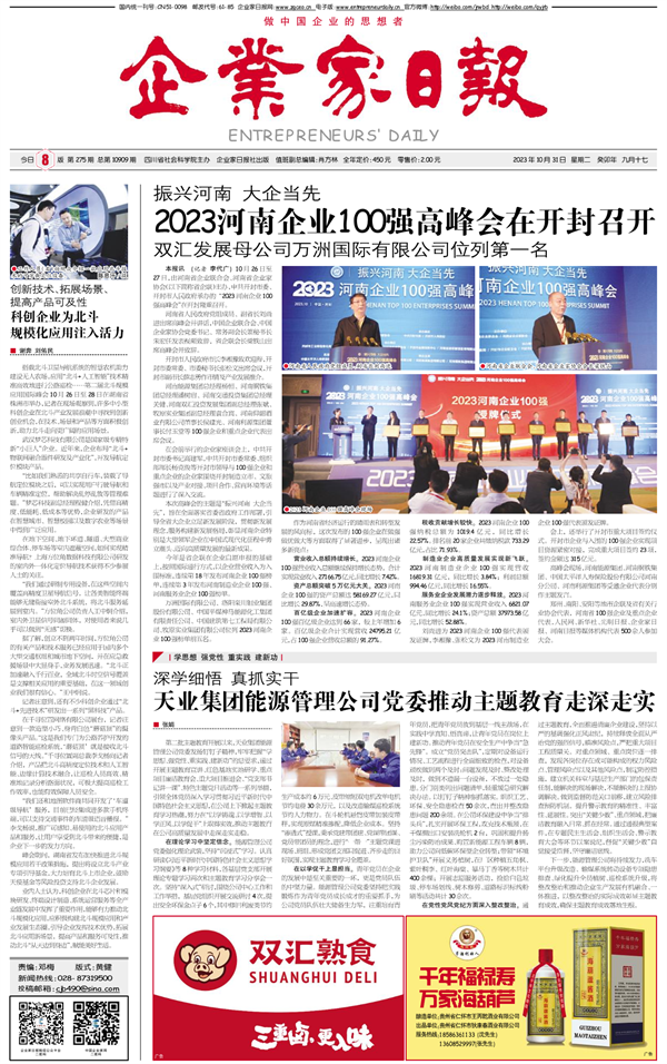 振兴河南 大企当先 2023河南企业100强高峰会在...