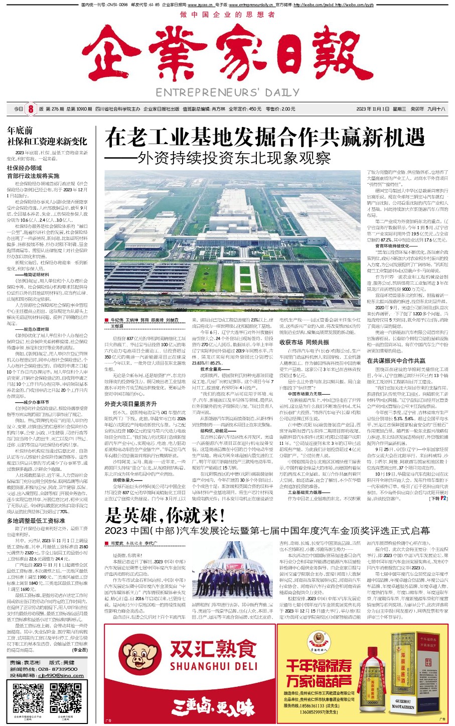 国内统一刊号:CN51—0098 中国•企业家日报