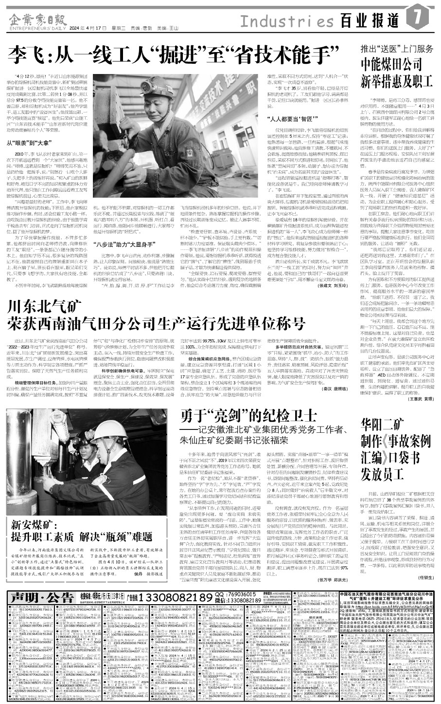 胜出必有所长,实干成就不凡。李飞默默在当好“一线工匠”的同时,努力向“智匠”奔赴,他说,要和自己的“铁哥们”一起向巷道更难更深处“行军”,用不懈奋斗定义煤海青春。