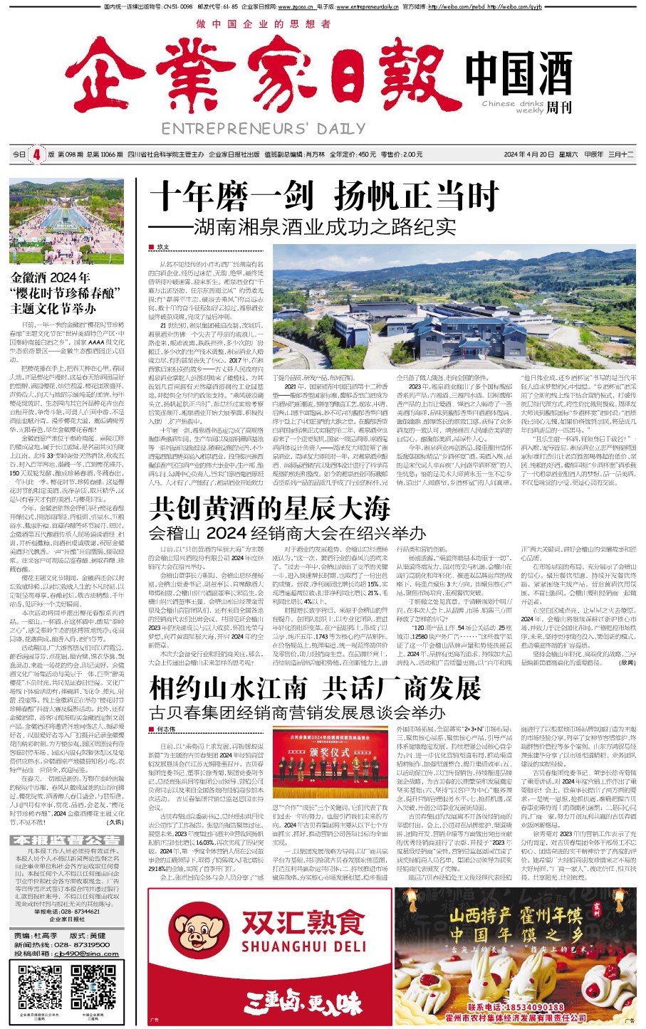 国内统一刊号:CN51—0098 中国•企业家日报