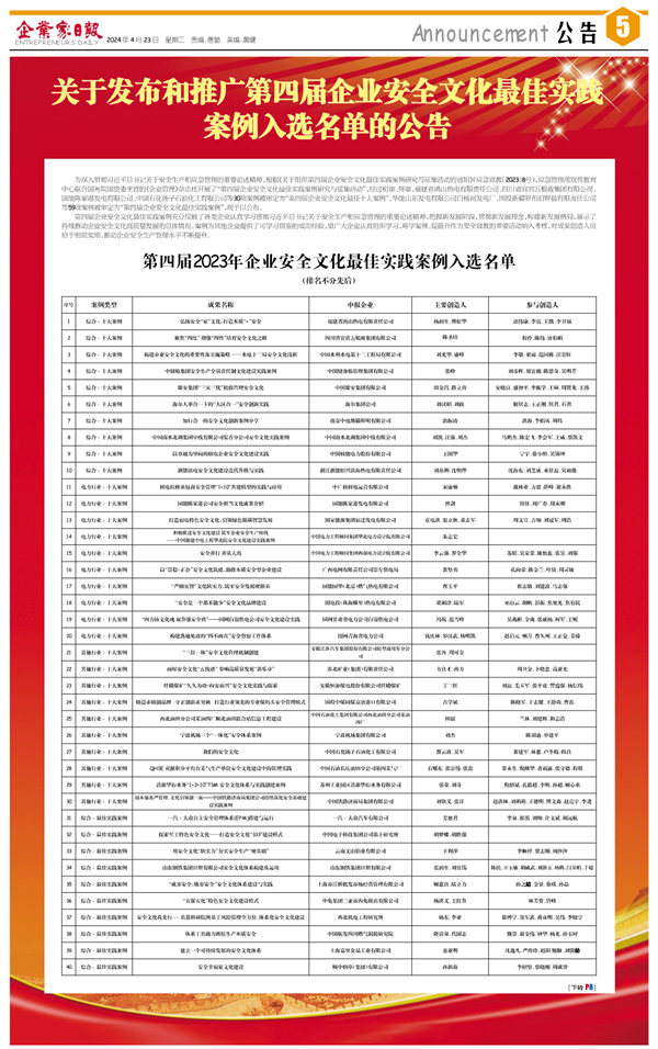 关于发布和推广第四届企业安全文化最佳实践 案...