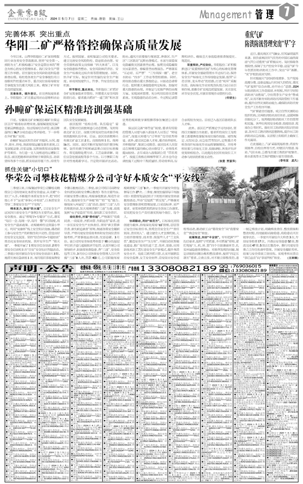 完善体系 突出重点 华阳二矿严格管控确保高质量...