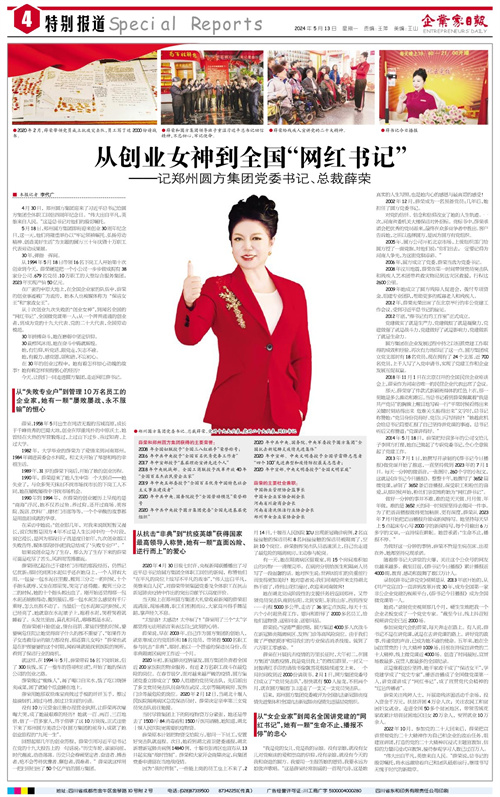 ●郑州圆方集团党委书记、总裁薛荣,党的十九大代表、党的二十大代表、网红书记