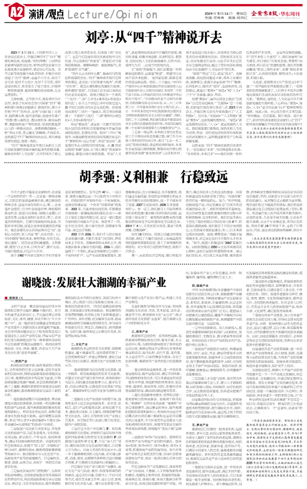 今天大会的主题是企业家精神,企业是一个怎样的组织?第一,企业是一种商业模式,它的目的是创造顾客价值,满足顾客的特殊需求,这是企业存在的方式;第二,企业是社会组织,它为社会创造价值,例如提供就业机会、促进共同富裕、纳税以及履行公益责任等,这是企业的社会责任;第三,企业是营利性组织,它要为发展提供现金流,为股东带来回报,这是企业持续发展的经济基石。做企业要充分认识到前两点是“因”,是初心与目的,第三点是“果”,而非目的。《大学》中提到“物有本末,事有终始。知所先后,则近道矣”。经营企业要明确道路,义利兼顾,做到“以义为本,以利为末”,摆正先后,方能行稳致远,打造百年企业。