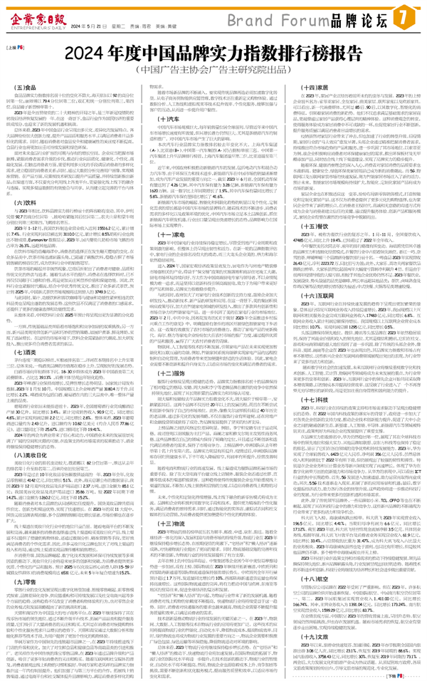 2024年度中国品牌实力指数排行榜报告 (中国广...