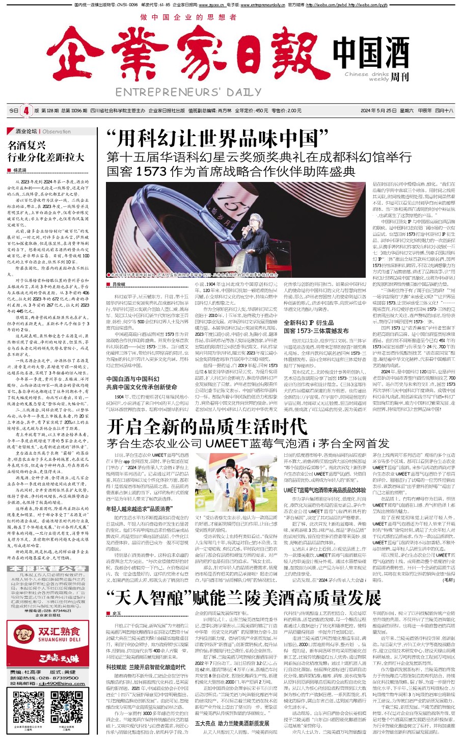 国内统一刊号:CN51—0098 中国•企业家日报