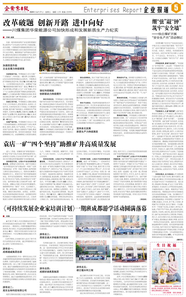 聚焦数字赋能。华荣能源公司落实数字赋能重大部署,由广元信息分公司完成华荣信息业务专业化整合,统筹公司信息化业务,推动信息板块市场化转型,实现信息产业优化升级,加速公司信息化建设步伐。不断优化华荣能源公司“安全管理信息系统”,提高管理效率和工作质量,实现数字赋能管理创新和技术进步,形成和发展具有煤炭企业特色的新质生产力。