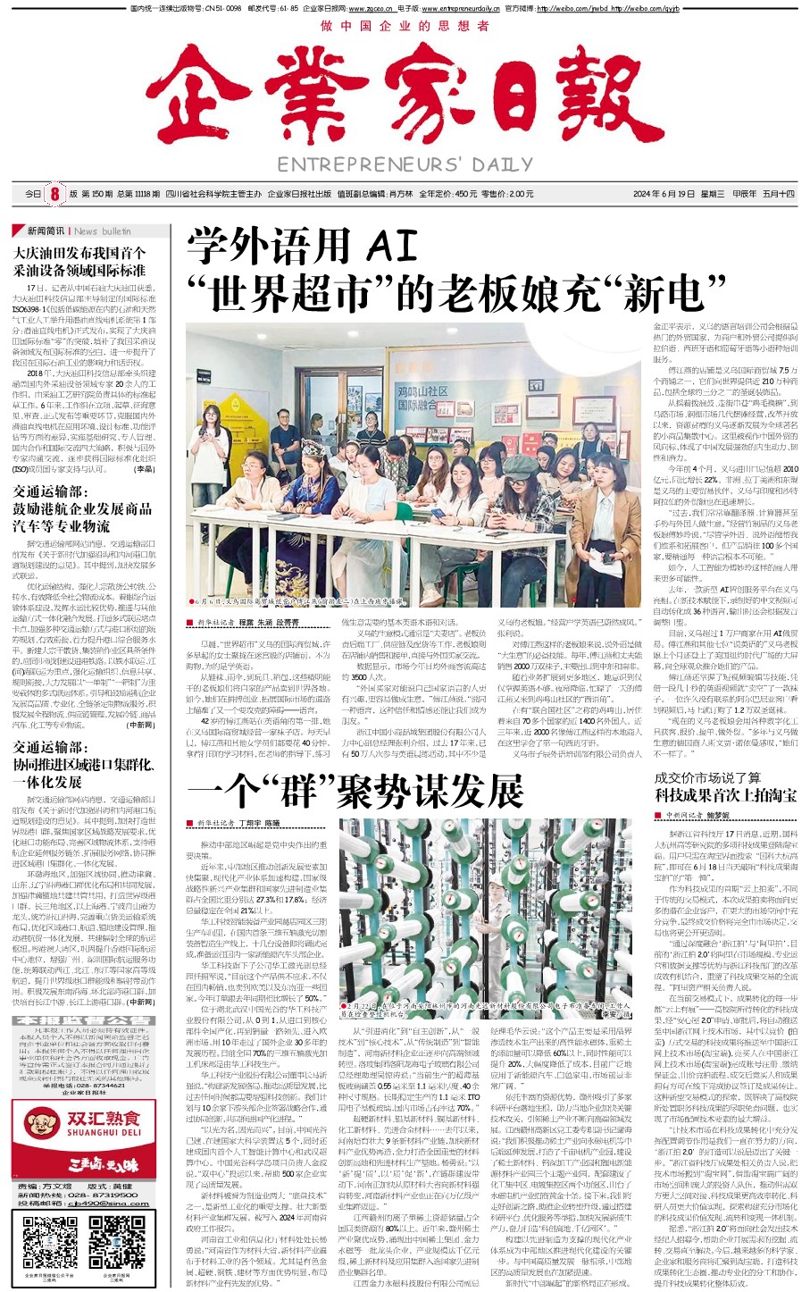 国内统一刊号:CN51—0098 中国•企业家日报