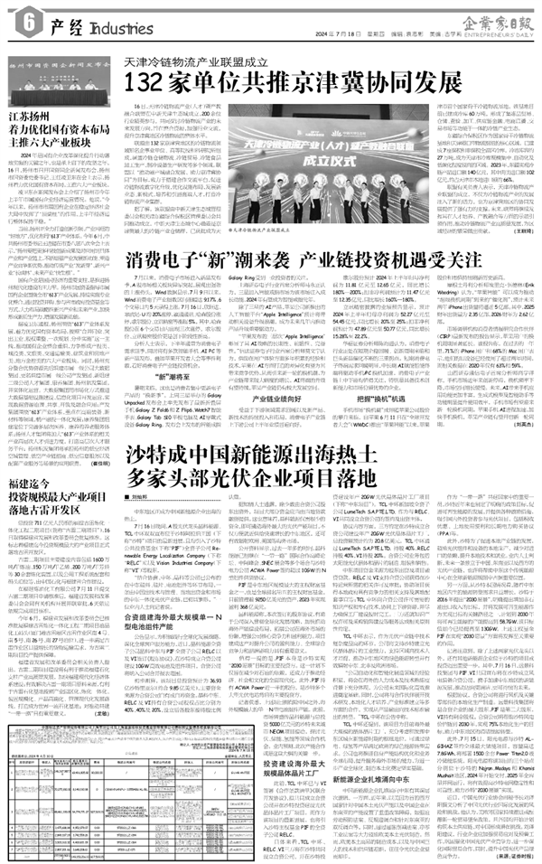 沙特成中国新能源出海热土 多家头部光伏企业项...