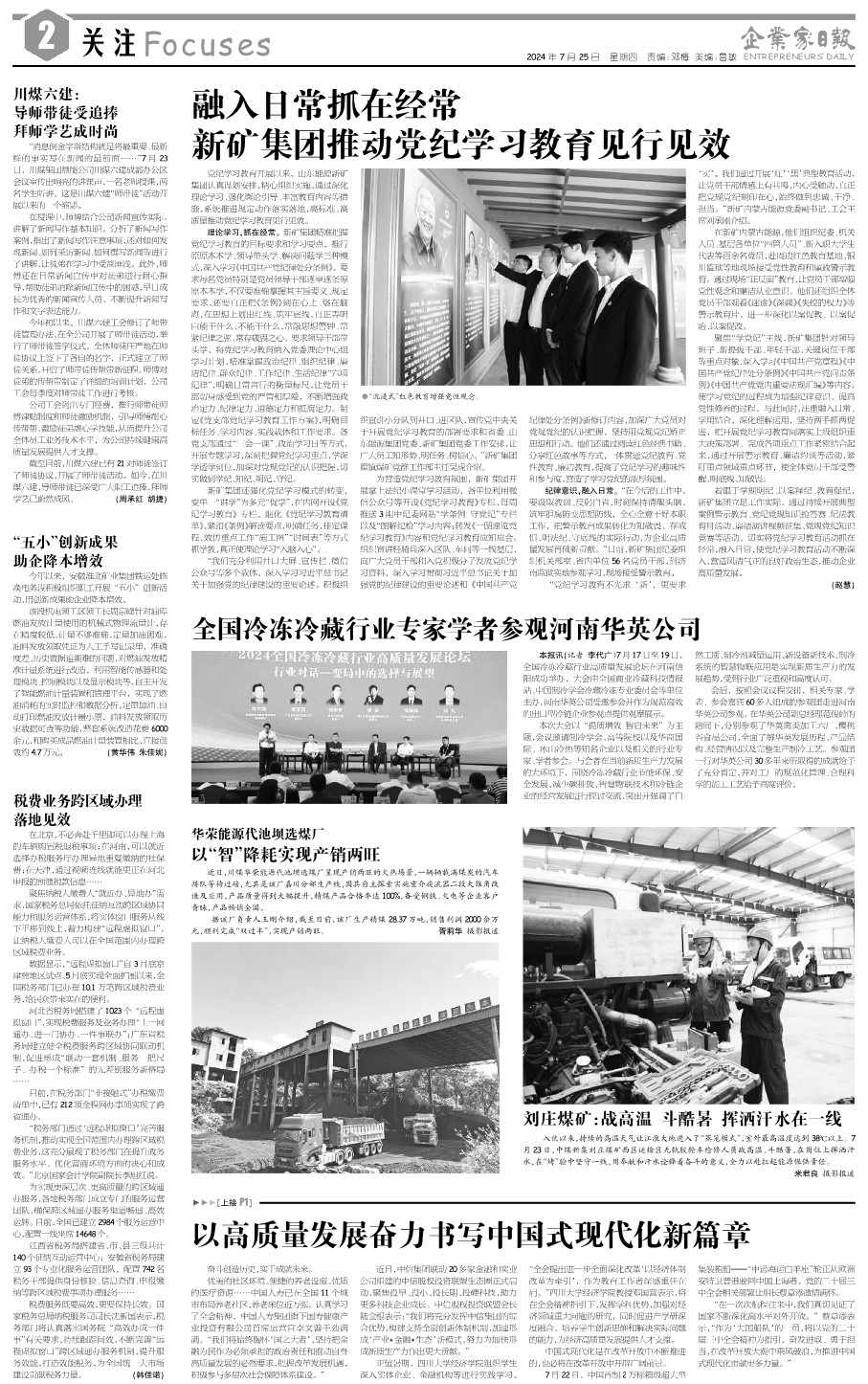 新矿集团还强化党纪学习模式的转变,变单一“讲学”为多元“促学”,在内网开设《党纪学习教育》专栏,细化《党纪学习教育清单》,紧扣《条例》解读要点,明确任务,排定课程,效仿重点工作“施工图”“时间表”等方式抓学教,真正使理论学习“入脑入心”。