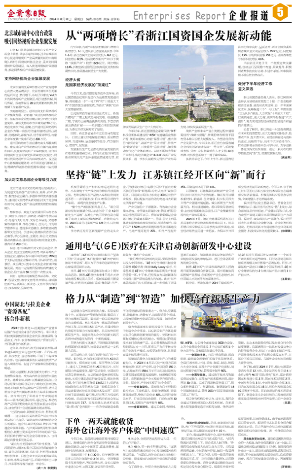今年以来,浙江国资国企紧紧围绕“315”科技创新体系建设和“415X”先进制造业集群培育,统筹实施核心功能“强基计划”、重大项目“牵引计划”、战新产业“星火计划”、传统产业“焕新计划”、开放提升“远航计划”,加快推动现代化产业体系建设。同时不断加大战新产业布局,构建省属企业“4+3+X”战新产业发展体系,进一步加大前瞻性先导性产业布局力度,加快发展新质生产力。