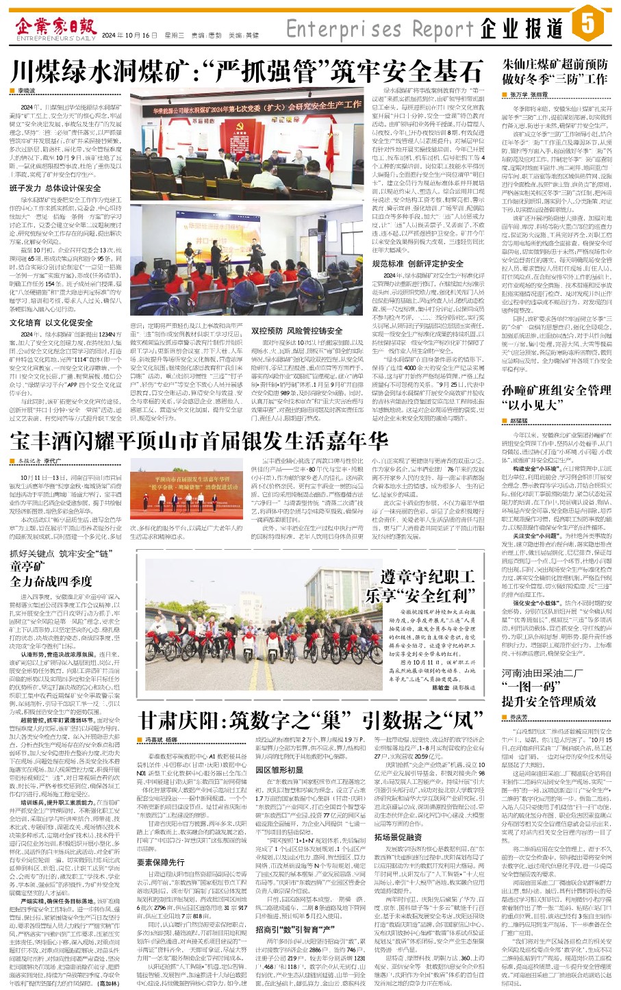 2024年,川煤集团华荣能源绿水洞煤矿秉持“矿工至上、安全为天”的核心理念,牢固树立“安全决定发展,事故危及生存”的发展理念,坚持“三管三必须”责任落实,以严抓强管筑牢矿井发展基石,在矿井采掘接替频繁,多次过断层、陷落柱、薄化带,安全管理难度大的情况下,截至10月9日,该矿杜绝了瓦斯、一氧化碳超限报警事故,杜绝了重伤及以上事故,实现了矿井安全有序生产。