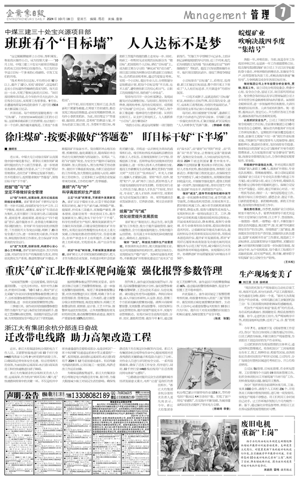 徐庄煤矿:按要求做好“答题卷” 盯目标干好“...