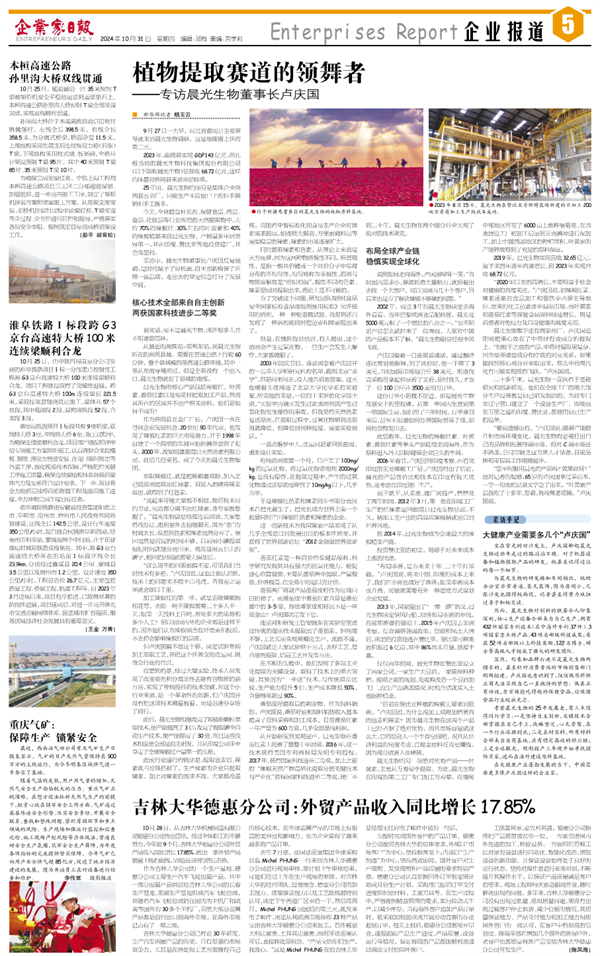 吉林大华德惠分公司:外贸产品收入同比增长17.8...