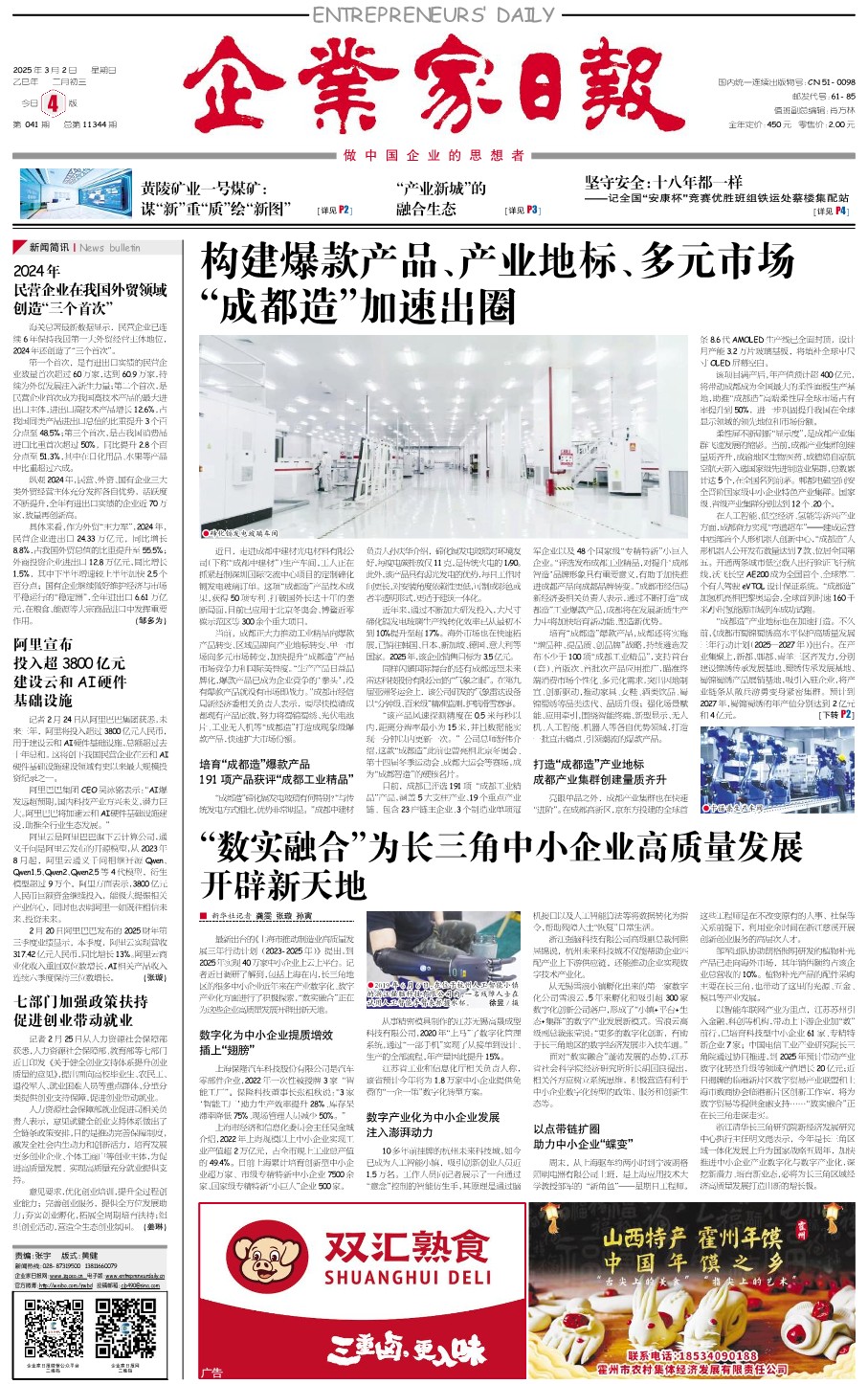 国内统一刊号:CN51—0098 中国•企业家日报