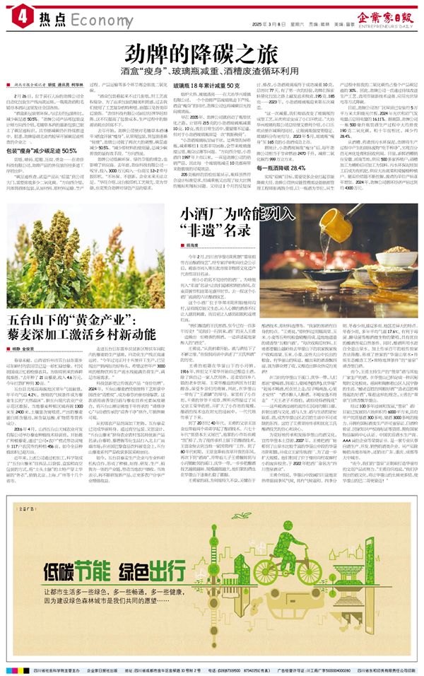 劲牌的降碳之旅 酒盒“瘦身”、玻璃瓶减重、...