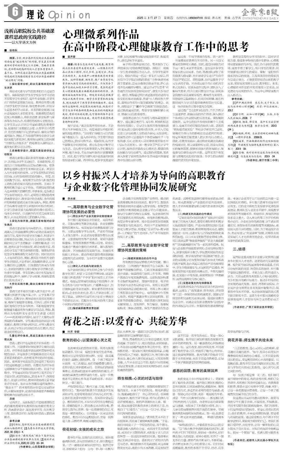 以乡村振兴人才培养为导向的高职教育 与企业数...