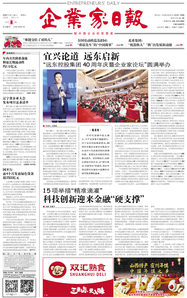 韧行致远,向新而生。蒋承志表示,站在远东成立40周年的历史节点,这份ESG报告不仅是对过往履责实践的全面梳理,更是面向未来的可持续发展宣言。作为中国实体经济的践行者,远东将继续践行“双碳”承诺,以高质量发展为中国式现代化贡献远东方案。