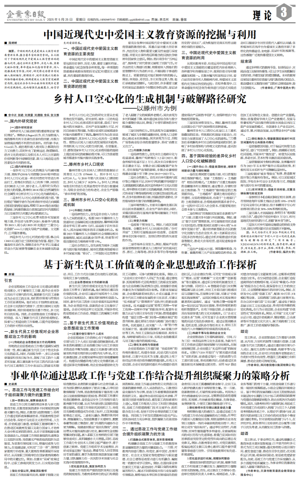 基于新生代员工价值观的企业思想政治工作探析...