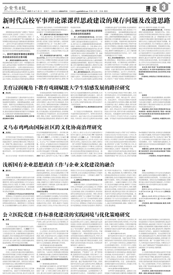新时代高校军事理论课课程思政建设的现存问题及...