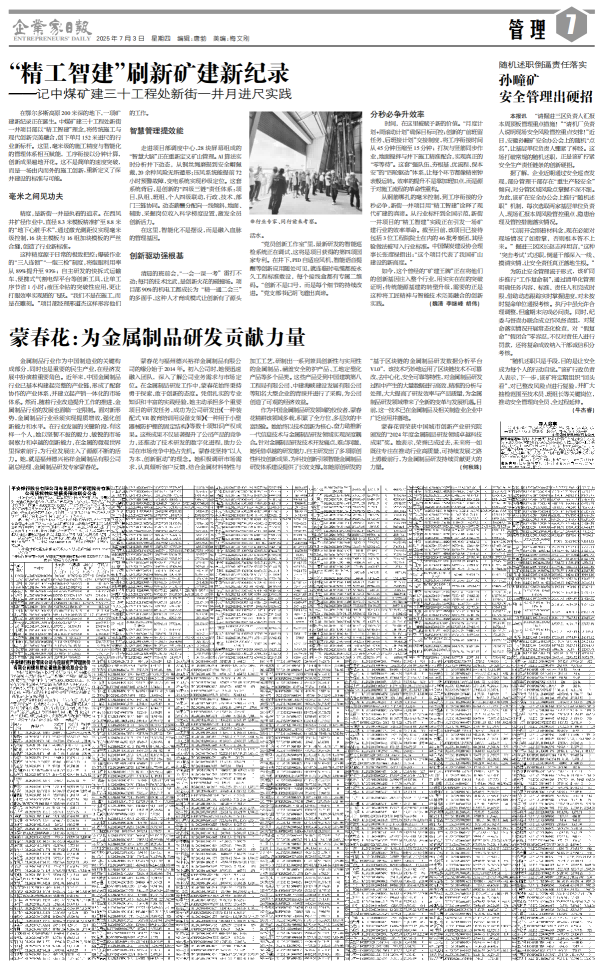 “精工智建”刷新矿建新纪录——记中煤矿建三十...