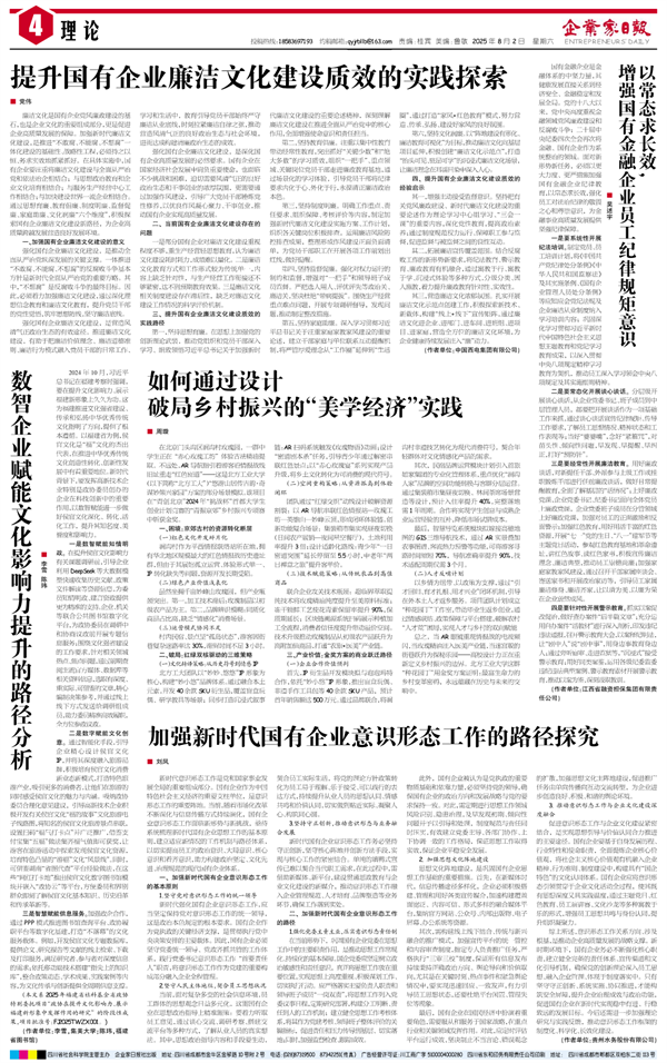 综上所述,意识形态工作关系方向、涉及根基,是推动企业高质量发展的战略支撑。新时期环境下,国有企业务必不断强化核心职责,建立健全完备的责任体系、宣传渠道和文化引导机制,确保党的创新理论深入员工思想、融入企业管理、体现于制度落实中。只有坚守守正创新、系统实施、协同推进,才能构筑安全屏障,提升企业治理成效与政治功能,促进国有企业在新时代实现稳中有进、行稳致远的发展目标。今后还需进一步加强理论研究与实践反馈,推动意识形态工作框架的制度化、科学化、长效化建设。