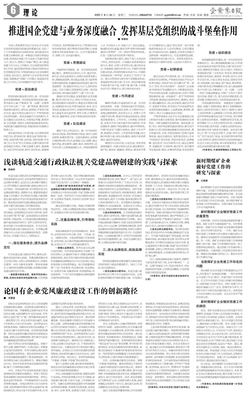 为深入贯彻落实习近平总书记关于国有企业改革发展和党的建设的重要论述、党的二十大对加强国有企业党的领导、党的建设作出的重大决策部署,进一步推进以党建引领基层治理,找准国企党建工作与业务工作融合的切入点、发力点,需树立“党建+”理念,深入推进党建工作与中心工作融合,充分发挥党的领导核心作用、基层党组织的战斗堡垒作用和党员的先锋模范作用,实现党的建设与企业发展相互促进、协同发力,最终助力企业实现可持续发展。现就推动“党建+”工作模式、促进国企党建工作与中心工作深度融合作如下思考。
