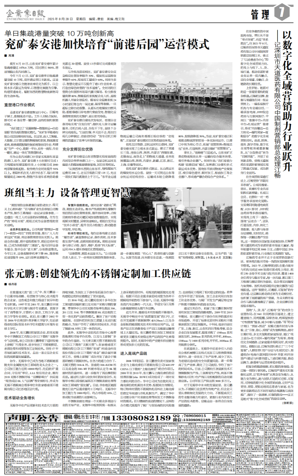 张元鹏:创建领先的不锈钢定制加工供应链...