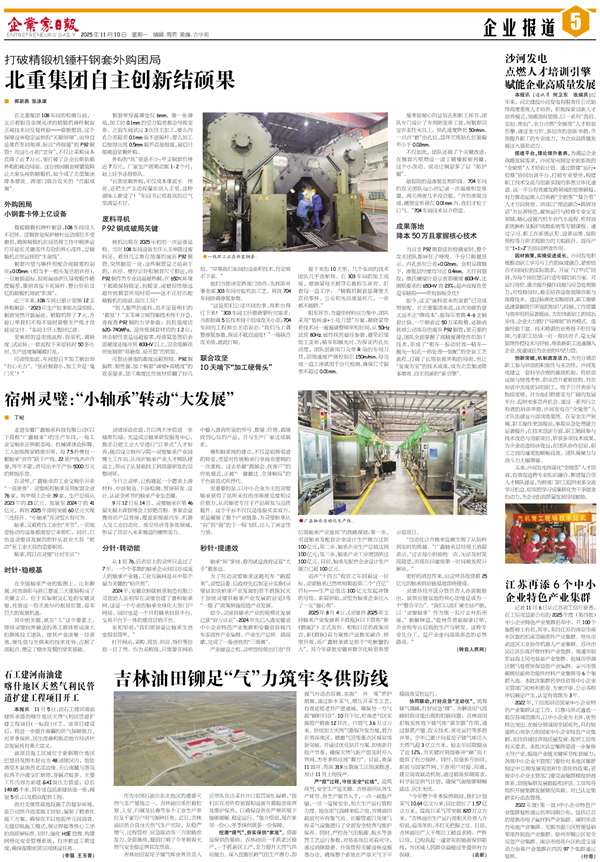 在北重集团108车间的检测台前,一支泛着银亮金属光泽的精锻机锤杆钢套正被技术员反复核验——谁能想到,这个保障设备稳定运转的“关键屏障”,前身竟是堆在车间角落、标注“待报废”的P92钢管?而这小小的“变身”,不仅让采购成本直降了近7万元,更打破了企业长期依赖外购的被动局面。这台曾因钢套频繁故障让大家头疼的精锻机,如今成了北重集团降本增效、跨部门联合攻关的“亮眼成果”。