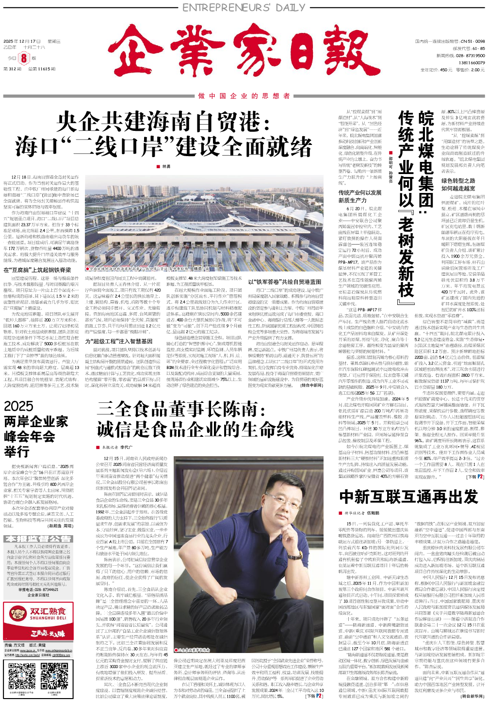 从“挖煤卖煤”到“用煤造材”,从“人海战术”到“智能开采”,从“黑色经济”到“绿色发展”……近年来,皖北煤电集团加速推动科技创新和产业创新深度融合,向高端化、智能化、绿色化转型升级,在传统产业的土壤上,奋力书写传统“老树发新枝”的转型答卷,勾勒出一条新质生产力跃升的“上扬曲线”。