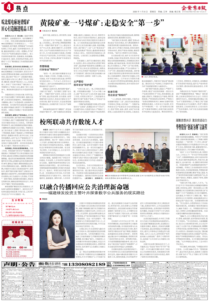 在此基础上,该矿充分激活党员、群监员、协管员、青年示范岗等安全管理“神经末梢”,通过构建“现场督导+宣教警示+亲情关怀”的立体化安全管理体系,将群众安全工作从传统的“纸面规章”切实转化为“实地防线”,推动安全理念深度融入每一个作业岗位、浸润每一名职工心间。