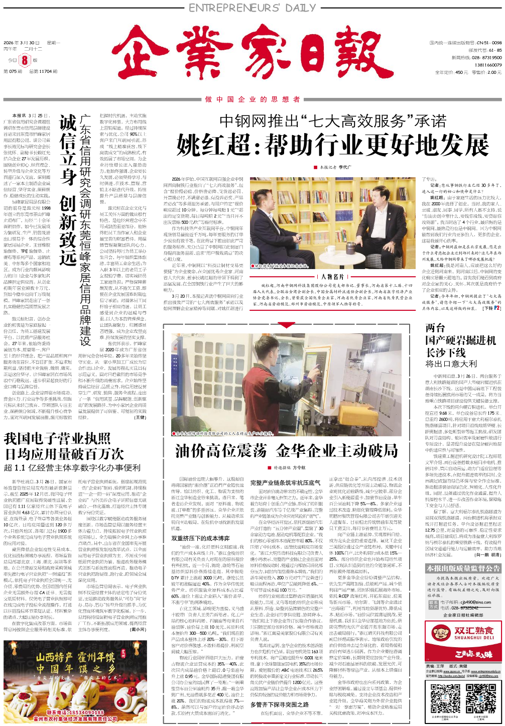 国内统一刊号:CN51—0098 中国•企业家日报