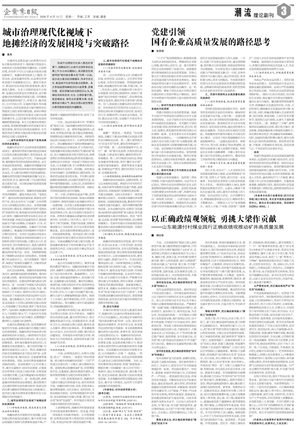 以正确政绩观领航 勇挑大梁作贡献 ——山东能源...