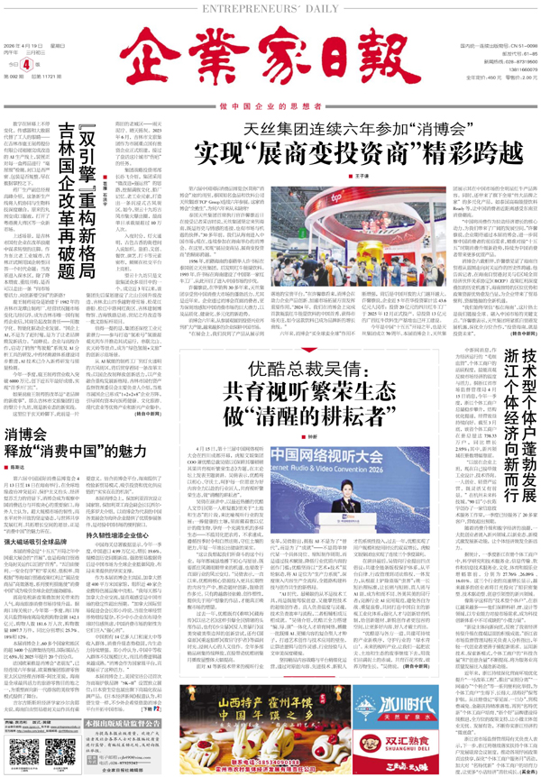 欢迎关注企业家日报多媒体报刊!