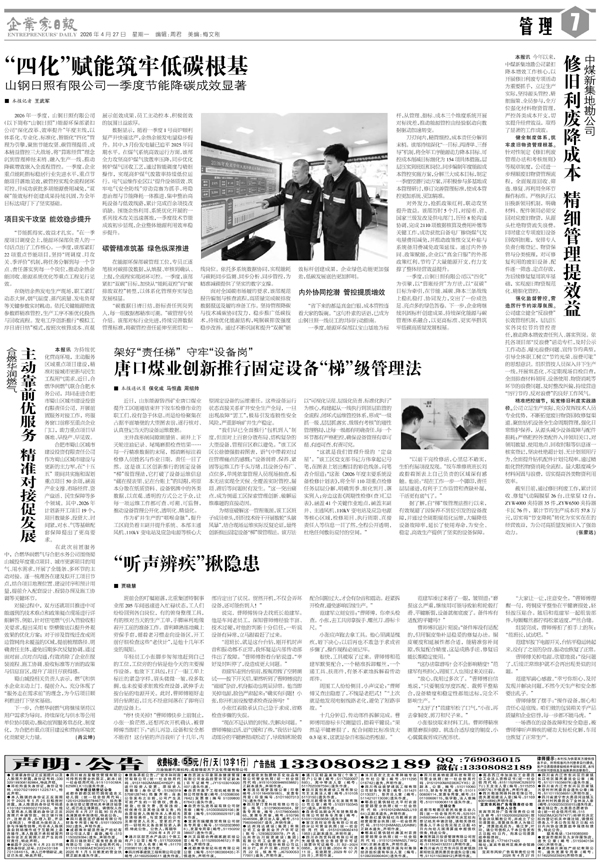 架好“责任梯” 守牢“设备岗” 唐口煤业创新推...